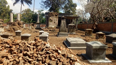 Sekitar tanggal 22 Mei 2020, pihaknya mengaku mendapat informasi berupa foto-foto dan video, terkait kegiatan renovasi tersebut. Sayangnya dengan dalih renovasi, ada bagian atau sisa yang diduga makam, yang diduga ikut kena pembangunan pagar Terlihat jelas dalam foto-foto itu, bongkaran batu bata sebagai bukti ada kegiatan penghancuran. Patut diduga renovasi tersebut tanpa ijin dari pihak BPCB. Padahal situs tersebut sudah teregister (tercatat) di BPCB..